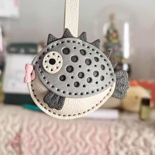 Leather Fish Bag Charm - Handmade Customized Blowfish Keychain
