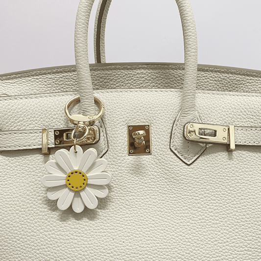 Leather Bag Charm - Customized Daisy Flower Keychain, Inspired by Nature