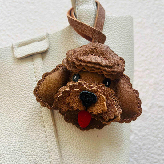 Personalized Dog Keychain - Lambskin Leather Poodle Teddy Charm for Dog Lovers