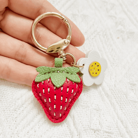 Custom Strawberry Leather Bag Charm - Fruit Charm For Nature Lover