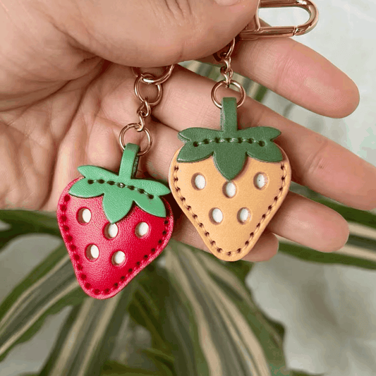 Leather Bag Charm - Customized Leather Strawberry keychain - Fruit Charm