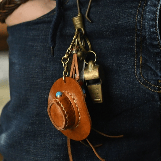 Leather Keychain - Cowboy Hat Bag Charm, 3D Keychain, Cowboy Pendant