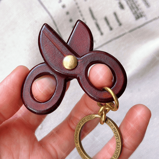 Leather Keychain - Scissors Bag Charm, 3D Keychain, Scissors Pendant