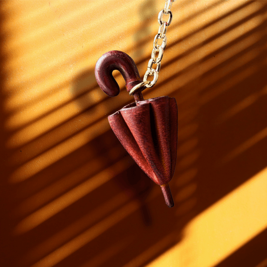 Leather Keychain - Umbrella Bag Charm, 3D Keychain, Umbrella Pendant