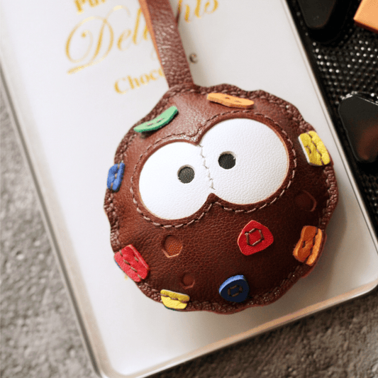 Leather Bag Charm – Cookie, Chocolate Ball Keychain, Fun Food Pendant