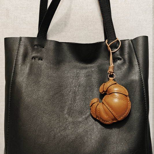 Leather Croissant Keychain - Handmade Fun Food Bag Charm Gift
