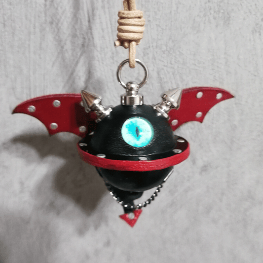 Leather Bag Charm – Fantasy Monster Eye / Demon Bell Keychain - Black
