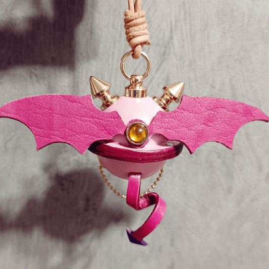 Leather Bag Charm – Fantasy Monster Eye / Demon Bell Keychain - Pink