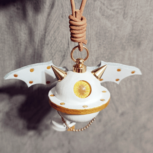 Leather Bag Charm – Fantasy Monster Eye / Demon Bell Keychain - Orange