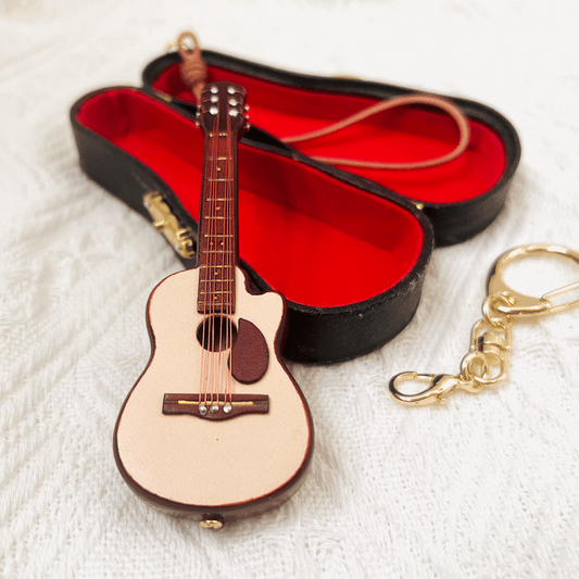 Leather Keychain - Guitar Bag Charm, Musical Instrument Pendant