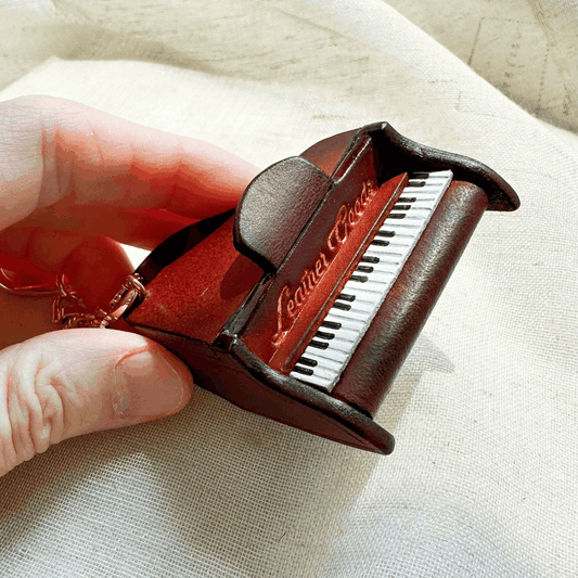 Leather Keychain - Leather Piano Bag Charm, Musical Instrument Pendant