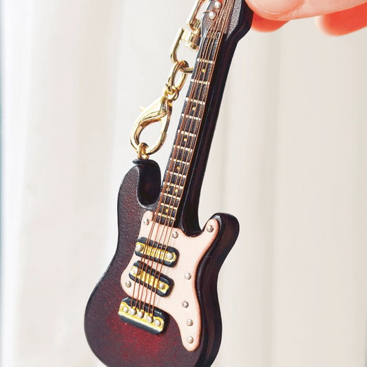 Leather Keychain Electric Guitar Bag Charm, Musical Instrument Pendant