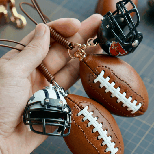 Leather Bag Charm - American Football Keychain, Gridiron Helmet