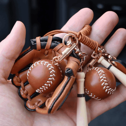 Leather Bag Charm - Baseball Set Keychain with Glove, Ball, and Bat