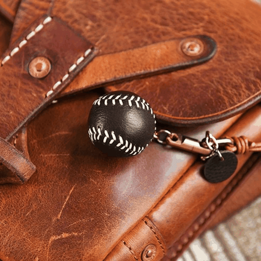 Leather Bag Charm - Leather Baseball Keychain, Sport Pendant